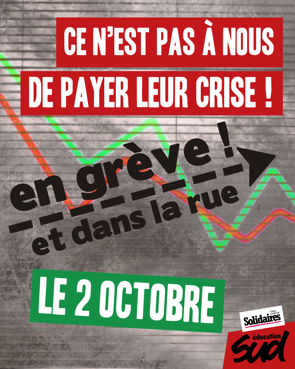 Pour que ces exigences aboutissent, nos organisations FSU, CGT Educ’action, SE-UNSA, CFDT Education Formation Recherche Publiques, SNALC, SUD éducation, CNT-FTE appellent à se mobiliser par la grève et les manifestations le mardi 14 octobre.